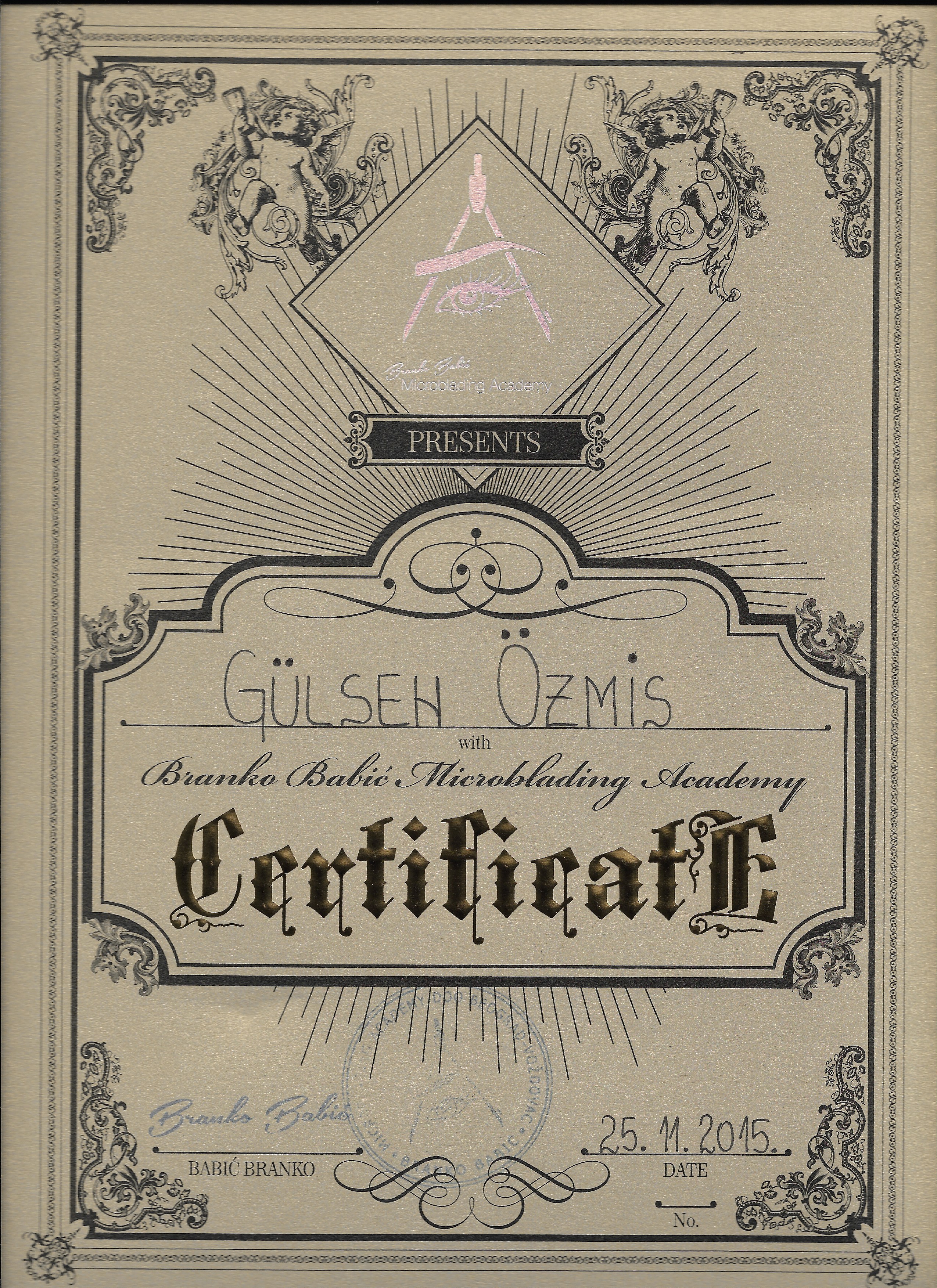 Für meine Arbeiten wurde ich nach dem erfolgreichen Abschluss der Ausbildung mit dem Titel Microblading Artist ausgezeichnet.